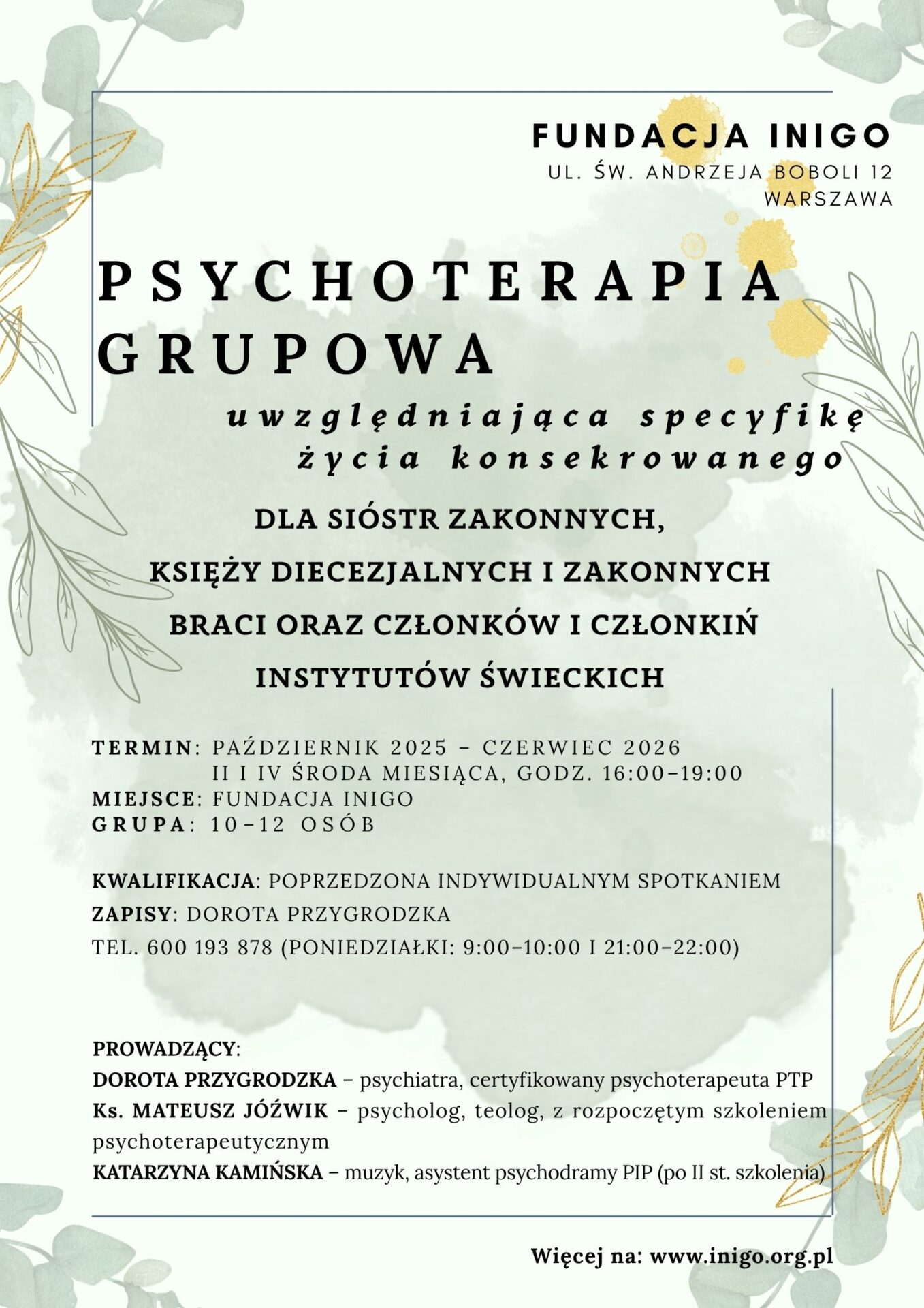 Zgłoszenia: Dorota Przygrodzka tel. 600 193 878 (poniedziałki, godz. 9.00-10.00 i 21.00-22.00)