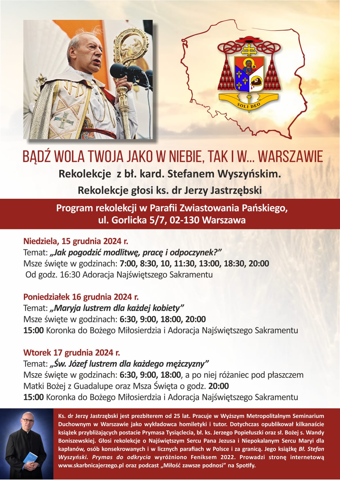 Zapraszamy na naszej parafialne rekolekcje w dniach 15-17 grudnia. Wygłosi je ks. dr Jerzy Jastrzębski.