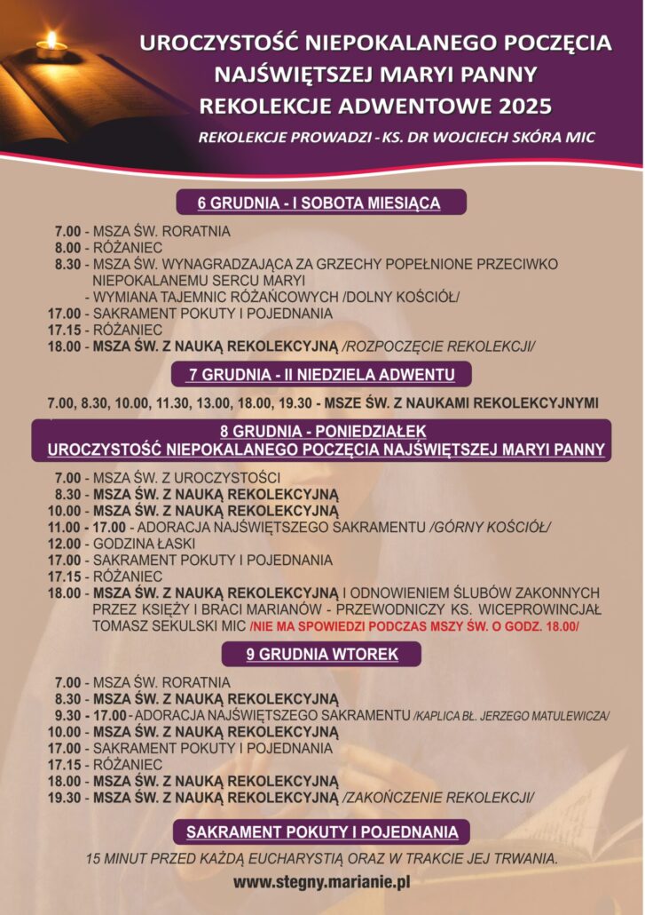 Rekolekcje adwentowe i Uroczystość Niepokalanego Poczęcia NMP