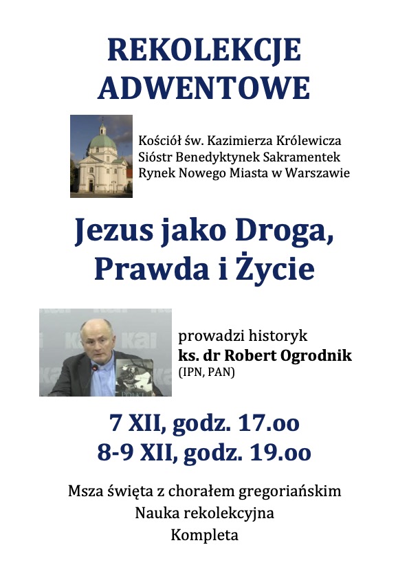 Rekolekcje adwentowe „Jezus jako Droga, Prawda i Życie”