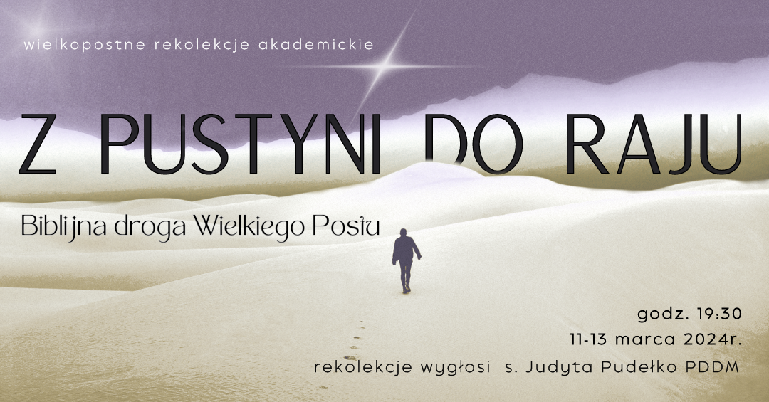 Przed nami kolejne tygodnie Wielkiego Postu. Aby dobrze przeżyć ten czas, zapraszamy Was serdecznie na rekolekcje wielkopostne „Z pustyni do raju. Biblijna droga Wielkiego Postu”!