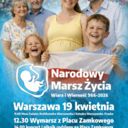 W niedzielę 19 kwietnia ulicami Warszawy przejdzie Narodowy Marsz Życia. Poprzedzi go Msza Święta o godz. 11.00 w Archikatedrze Warszawskiej, której będzie przewodniczył biskup Piotr Jarecki. Marsz wyruszy o godz. 12.30 z Placu Zamkowego