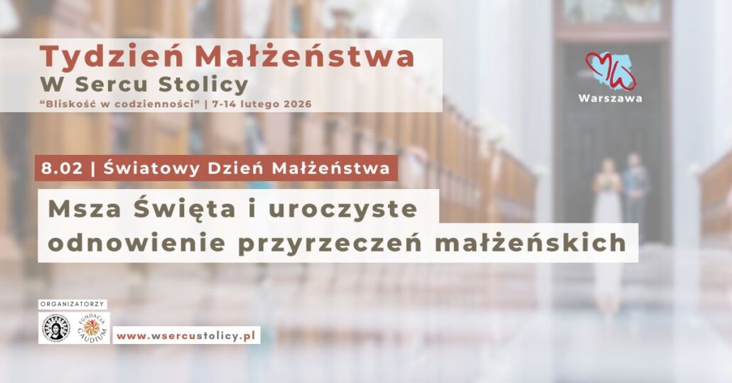 08 lutego 2026 – Światowy Dzień Małżeństwa – niedziela – na mszach świętych o godz. 11:00, 12:30 i 18:30 – kościół Wszystkich Świętych, Plac Grzybowski 3/5, Warszawa