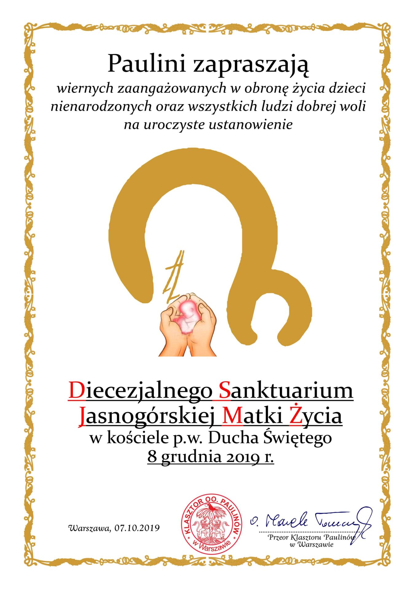 Ustanowienie sanktuarium Jasnogórskiej Matki Życia
