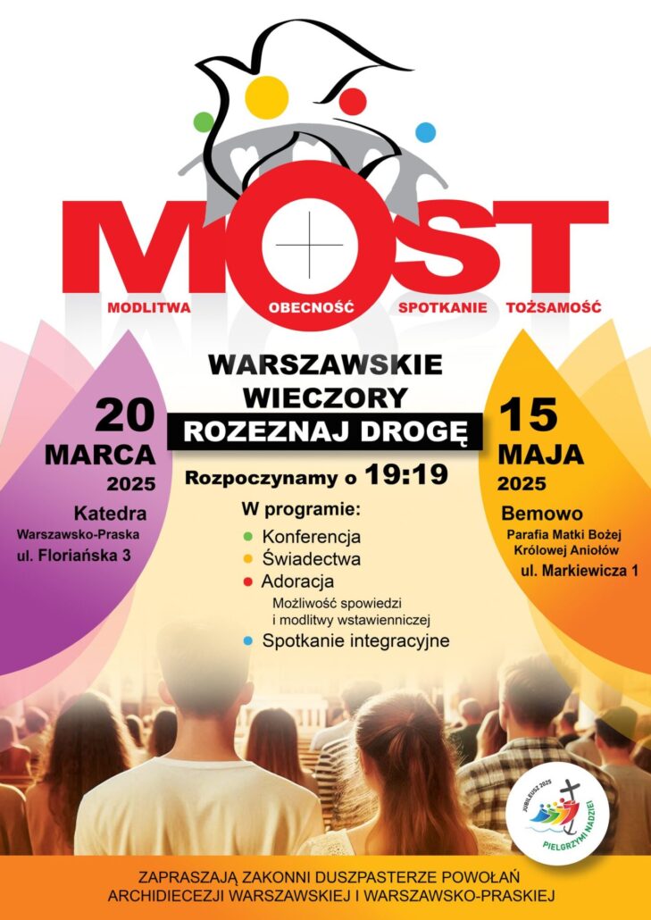 Zakonni duszpasterze powołaniowi zapraszają młodzież oraz wszystkich młodych duchem i sercem na MOST- warszawski wieczór 'Rozeznaj Drogę', który odbędzie się 20 marca o godzinie 19:19 w katedrze warszawsko-praskiej (ul. Floriańska 3)