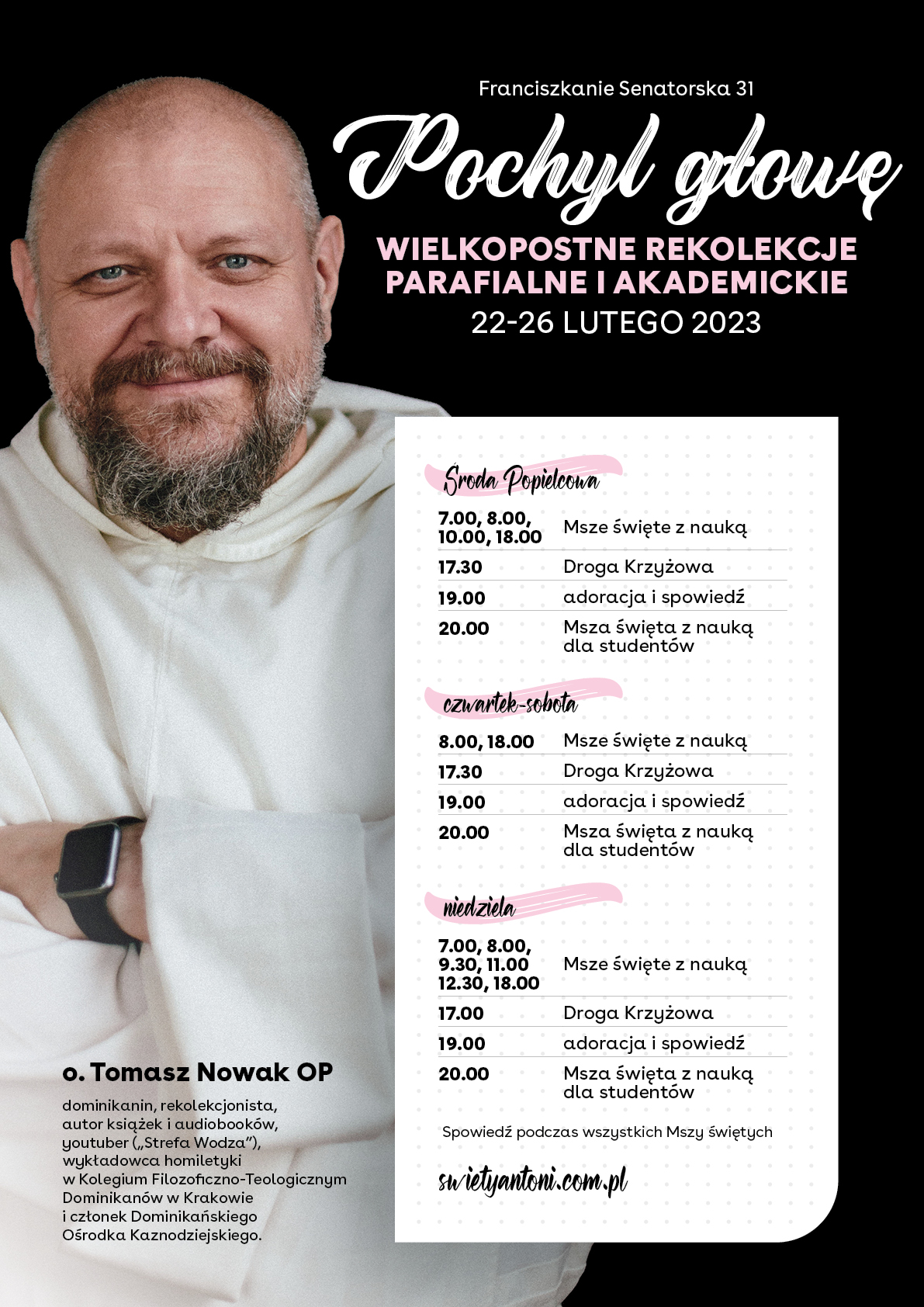 Rekolekcje od Środy Popielcowej, 22 lutego, do niedzieli, 26 lutego, poprowadzi o. Tomasz Nowak OP