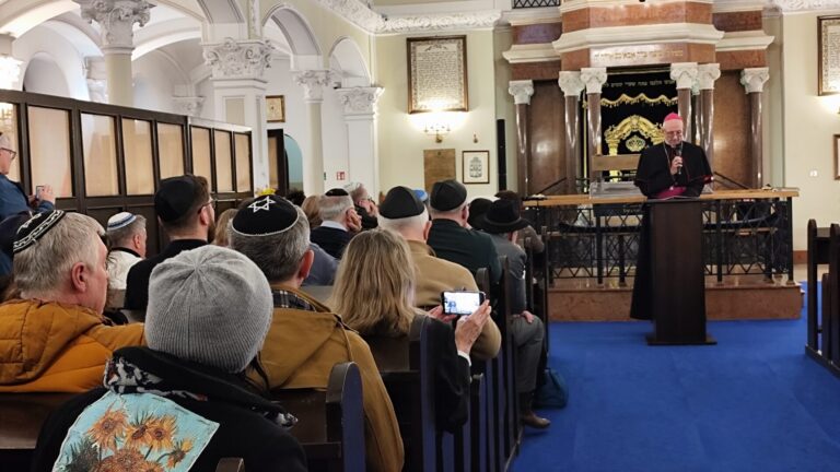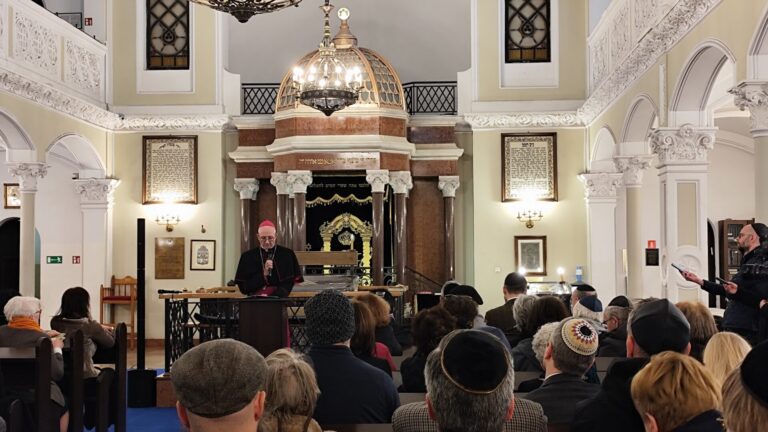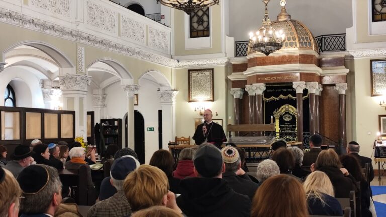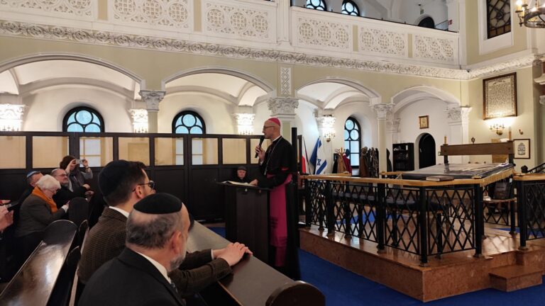 Hierarcha przypomniał ostatnie przesłanie Jana Pawła II z 2004 roku przygotowane na stulecie rzymskiej Synagogi Większej. Jak podkreślił, jest to “niezwykły, choć rzadko cytowany tekst św. Jana Pawła II”, który powstał niespełna rok przed jego śmiercią. Abp Galbas podkreślił, że Jan Paweł II zawarł w tym przesłaniu jasną deklarację, nazywając Żydów “pierworodnym narodem Przymierza”.