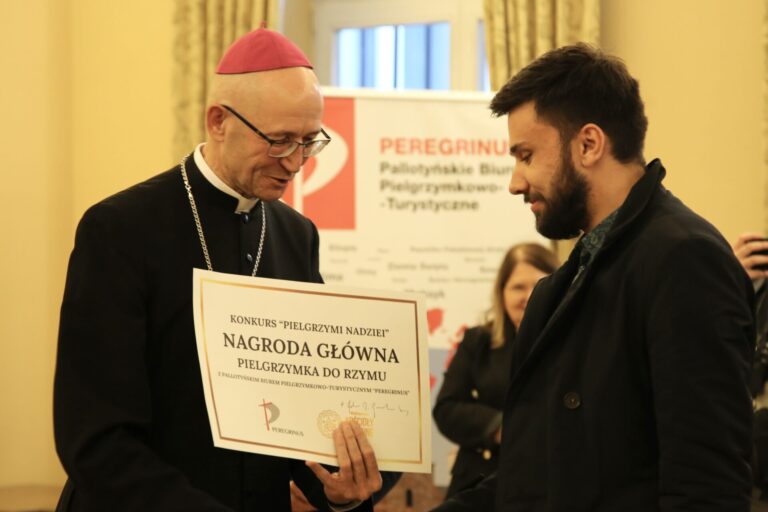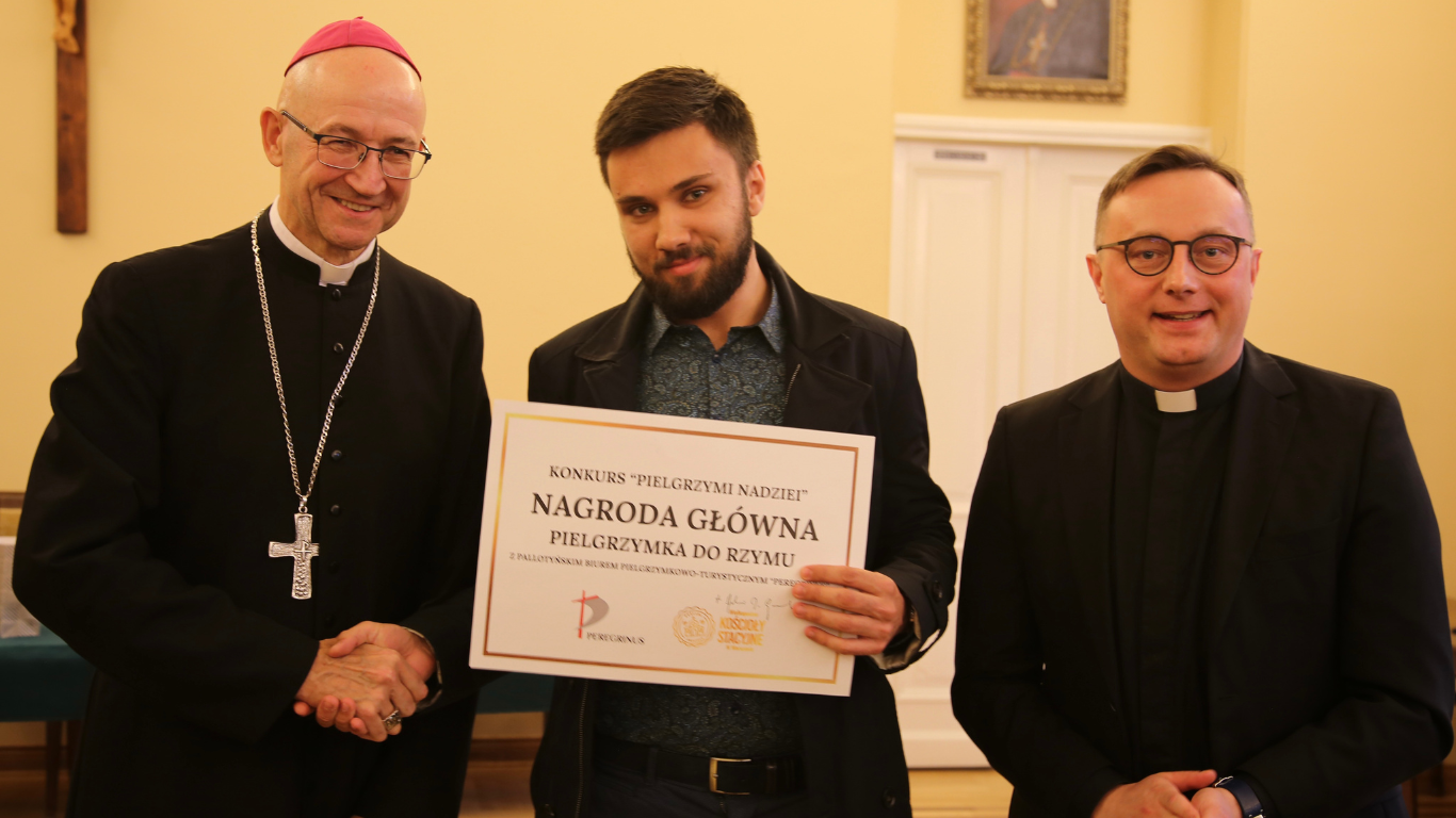 Nagrody wręczyli metropolita warszawski abp Adrian Galbas oraz ks. Grzegorz Kurp SAC, dyrektor Pallotyńskiego Biura Pielgrzymkowo-Turystycznego “Peregrinus”, które jest sponsorem nagrody głównej, czyli pielgrzymki do Rzymu.