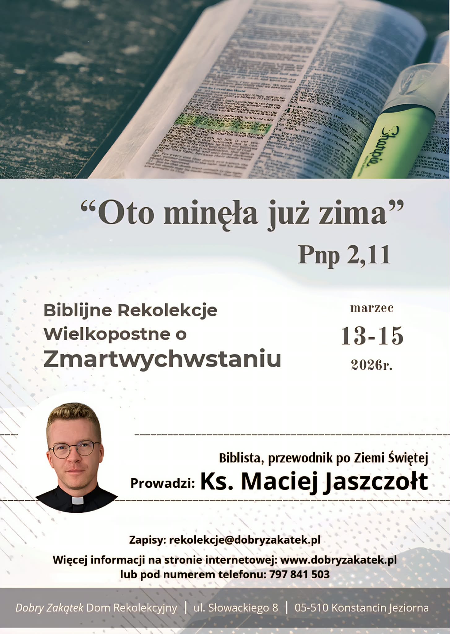 Szczegóły i zapisy: https://dobryzakatek.pl/rekolekcje/biblijne-rekolekcje-wielkopostne-o-zmartwychwstaniu/