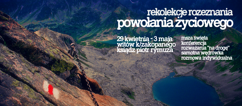 Duszpasterstwo Akademickie SANDAŁ zaprasza studentów i ludzi młodych w wieku 18-30 lat na rekolekcje rozeznania powołania życiowego do Witowa k/Zakopanego w dn. 29/4 – 3/5. Skupienie poprowadzi ks. Piotr Rymuza.